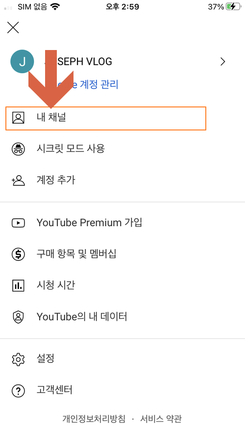 오른쪽 위의 계정 버튼 누름 [내 채널] 누름