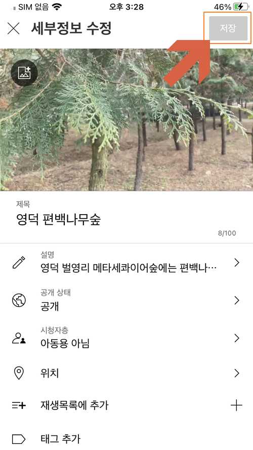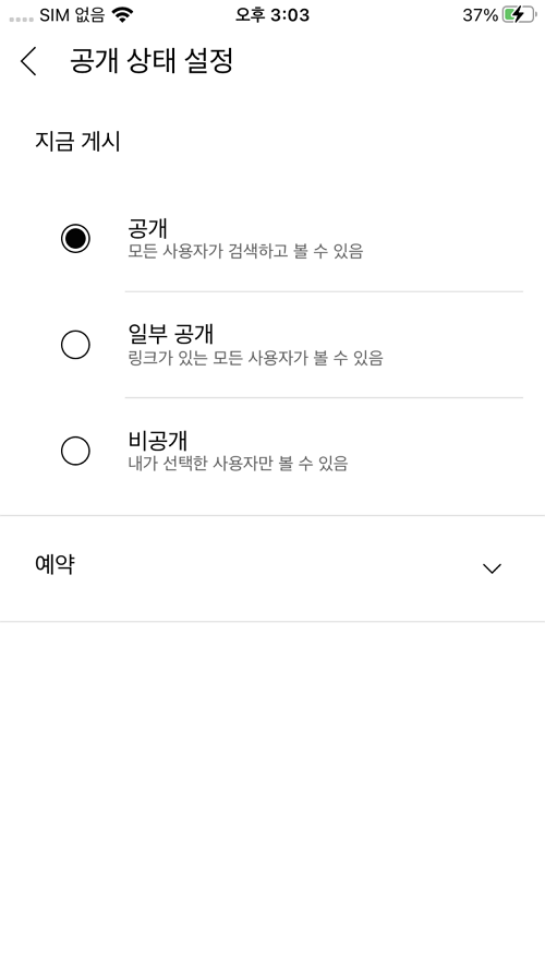 업로드한 영상은 '공개/비공개/일부공개' 중 하나로 설정할 수 있습니다.