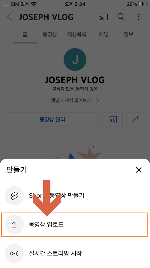 스마트폰에서 촬영 또는 편집한 영상을 컴퓨터를 사용하지 않고 스마트폰에서 직접 업로드할 수 있습니다.