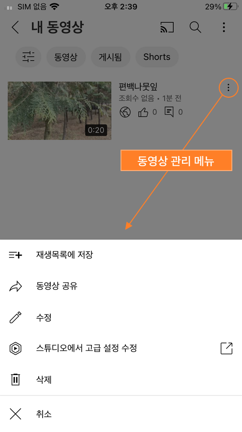 유튜브 채널을 운영하고 관리할 때 스마트폰의 유튜브 앱을 이용하면 스마트폰에서 영상을 바로 업로드하고 관리까지 할 수 있으므로 편리합니다.