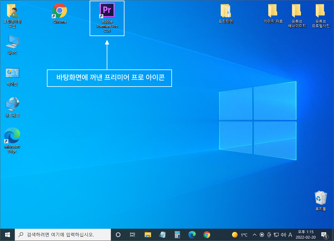 아래 화면과 같이 바탕화면에 프리미어 프로의 아이콘이 나타났습니다.