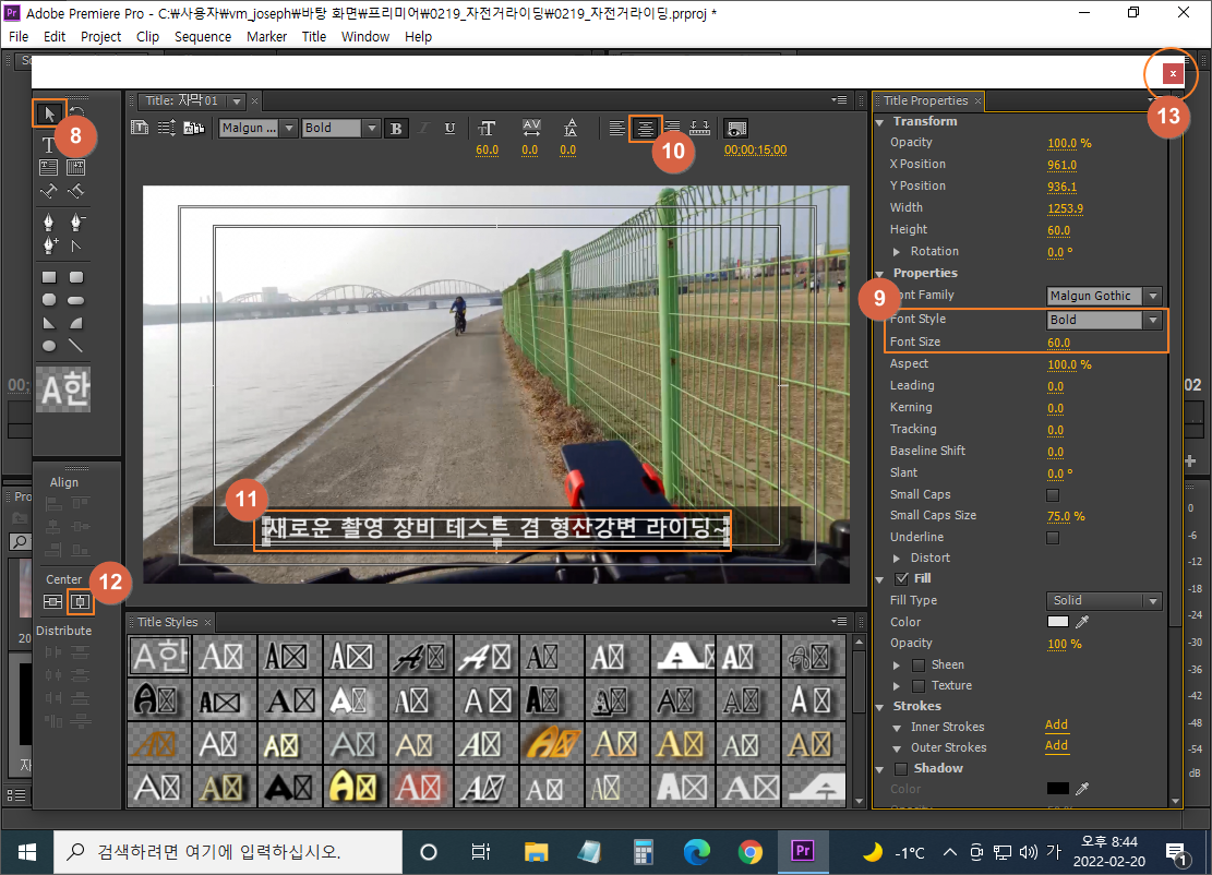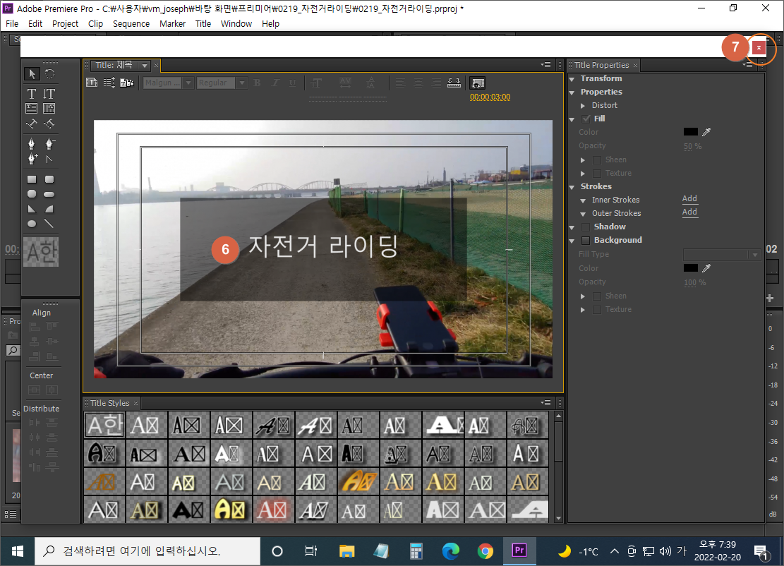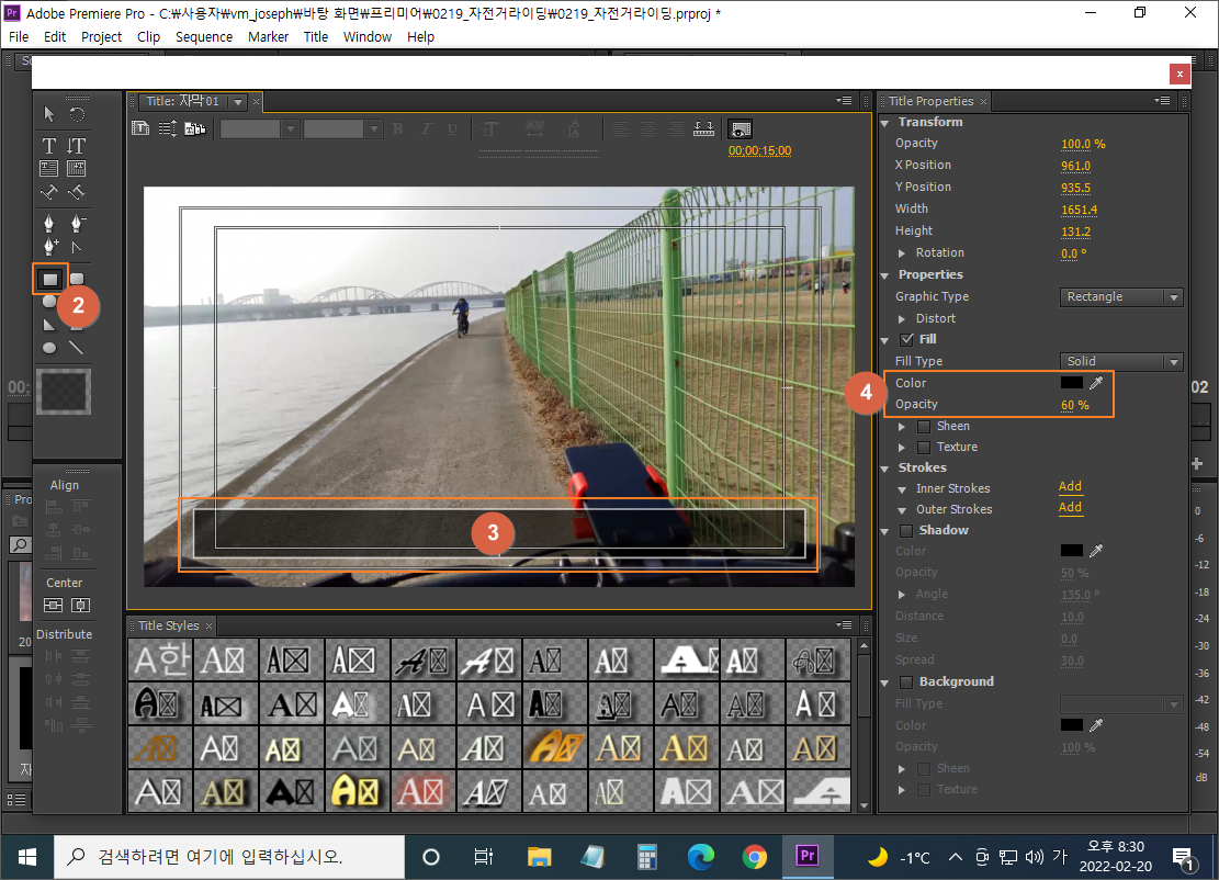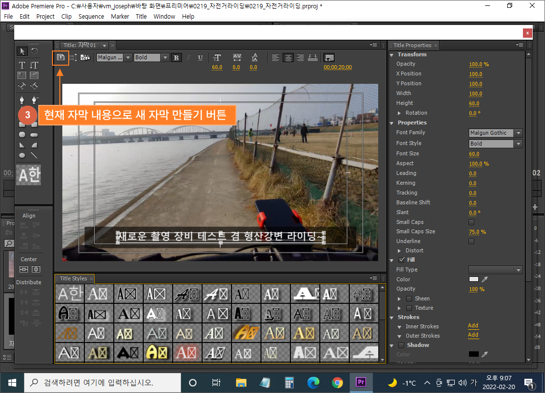 (2) 타이틀러에서 제목 만들기 (단축키 CTRL+T)