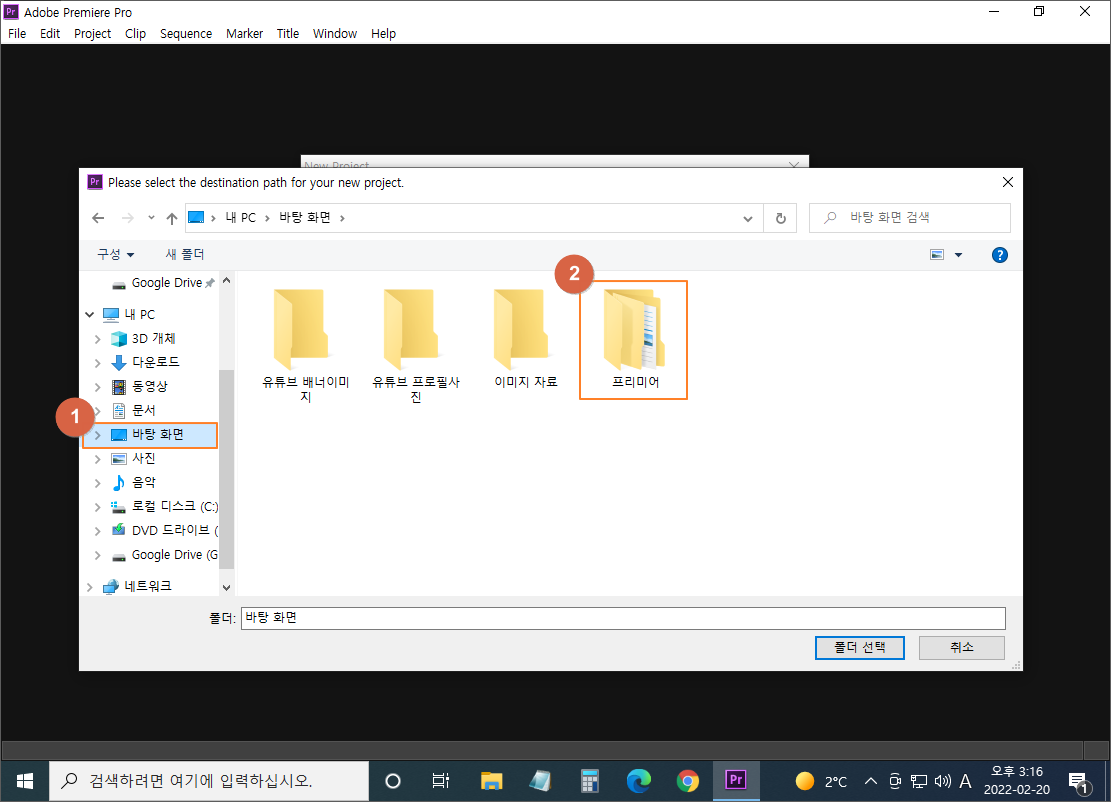 ② 프리미어 폴더 더블 클릭 (영상작업 주(Main) 폴더)