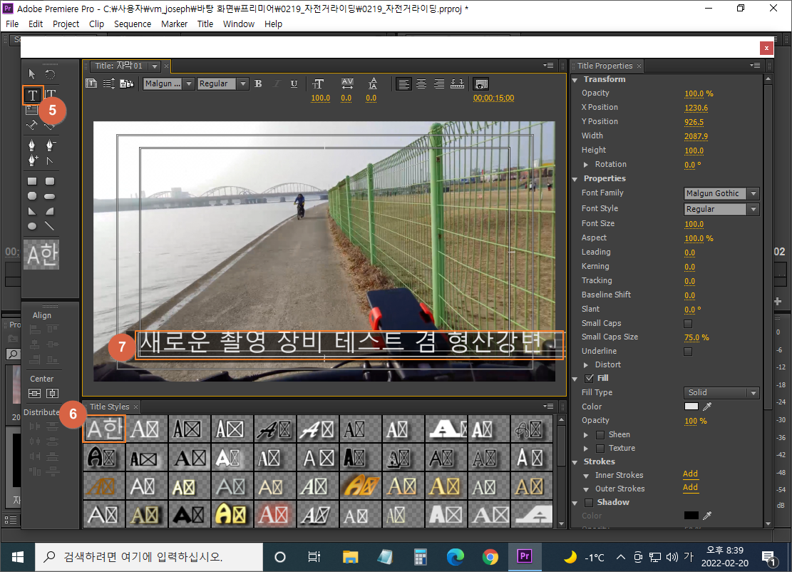 ⑦ 작업 영역 클릭하여 자막 입력 (크기와 색상 등은 일단 글자 입력해 놓은 다음 변경)