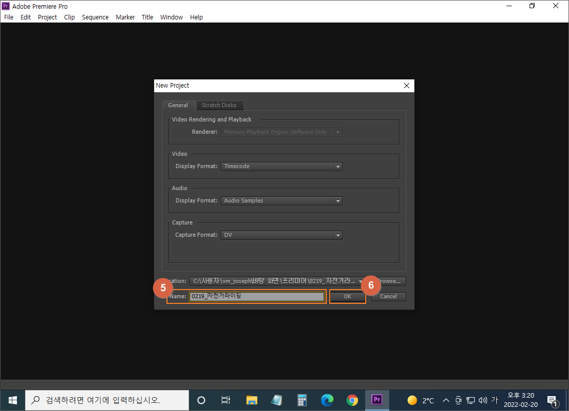 ⑤ 프로젝트 이름 입력(프로젝트 시작날짜_영상의 제목)