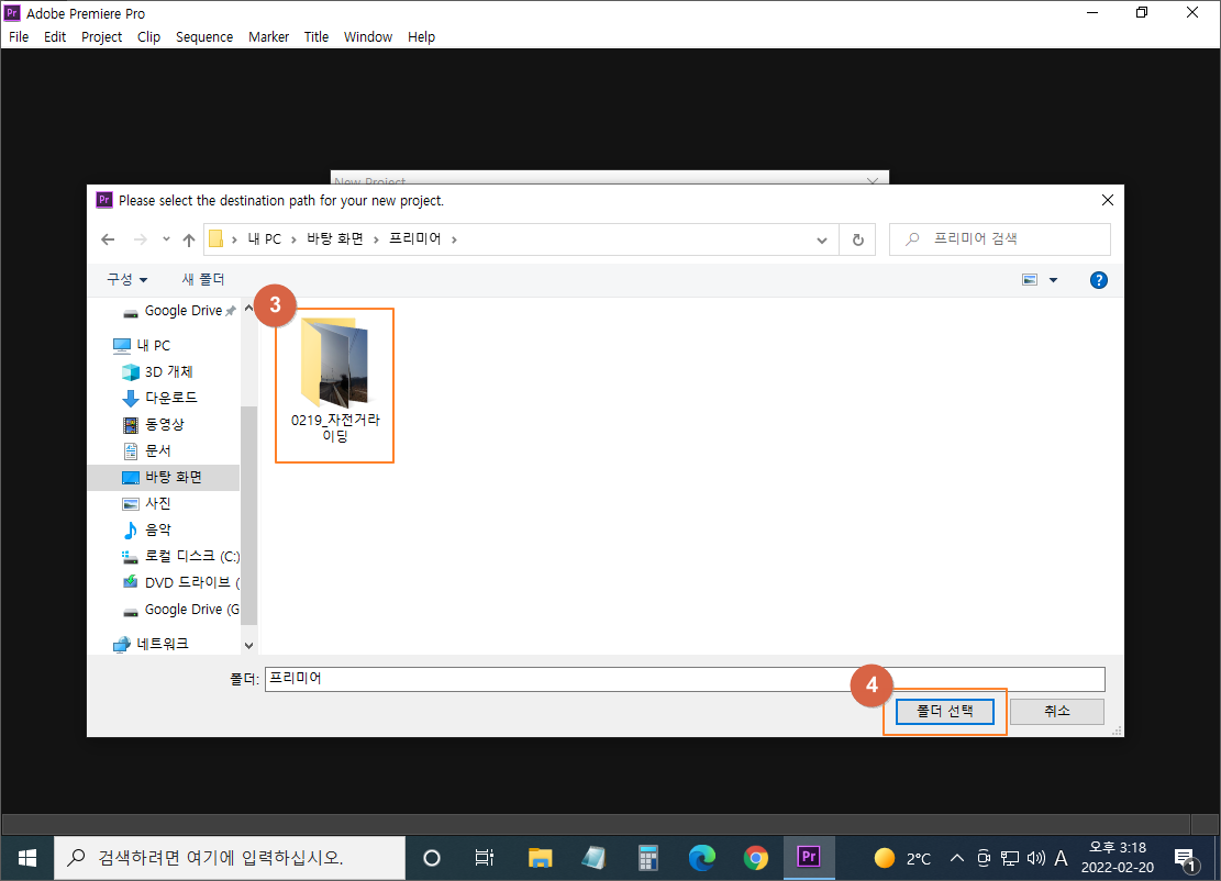 ② 프리미어 폴더 더블 클릭 (영상작업 주(Main) 폴더)