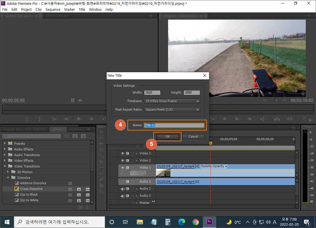 ⑤ 프로젝트 이름 입력(프로젝트 시작날짜_영상의 제목)