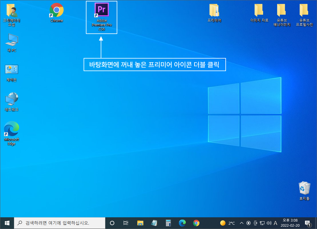 프리미어 프로 아이콘 바탕화면에 꺼내기