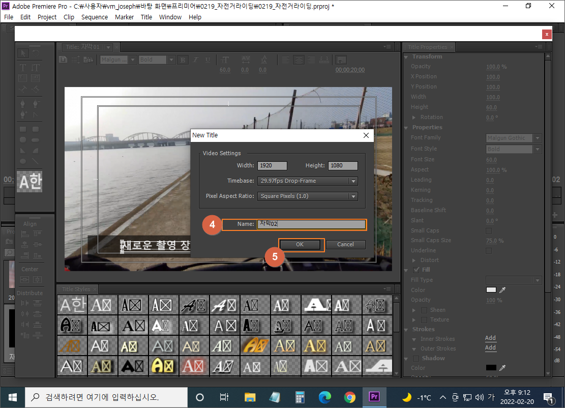 ④ Name: 새 자막 이름 '자막02' 입력