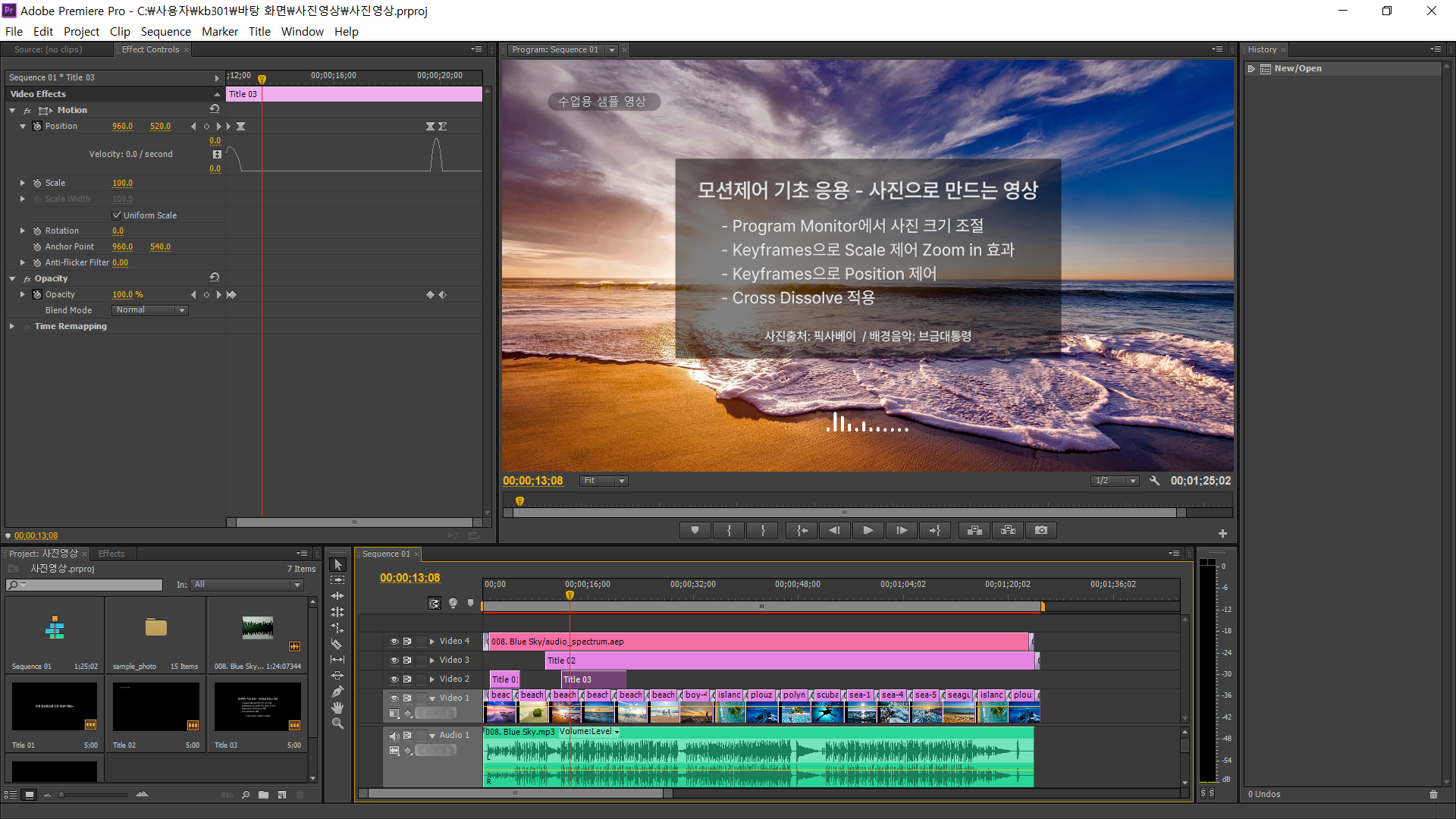 과정: 8.6 사진으로 영상 만들기(Keyframes 활용)