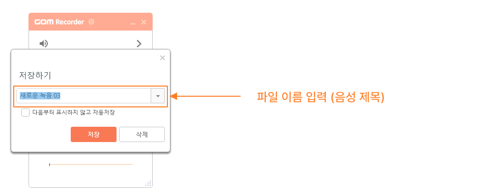 정지 버튼(■)을 누르면 아래와 같이 저장할 파일 이름을 입력하는 창이 뜹니다.