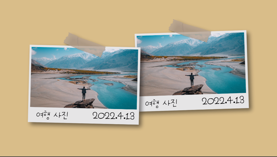 테이프를 사진 위에 붙인 후,