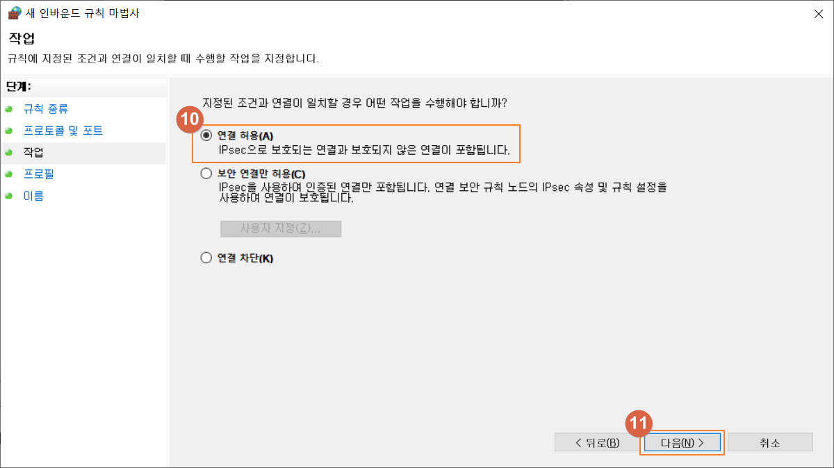 ⑩ '연결 허용' 선택