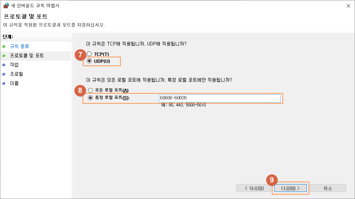 ⑦ 'UDP(U)' 선택