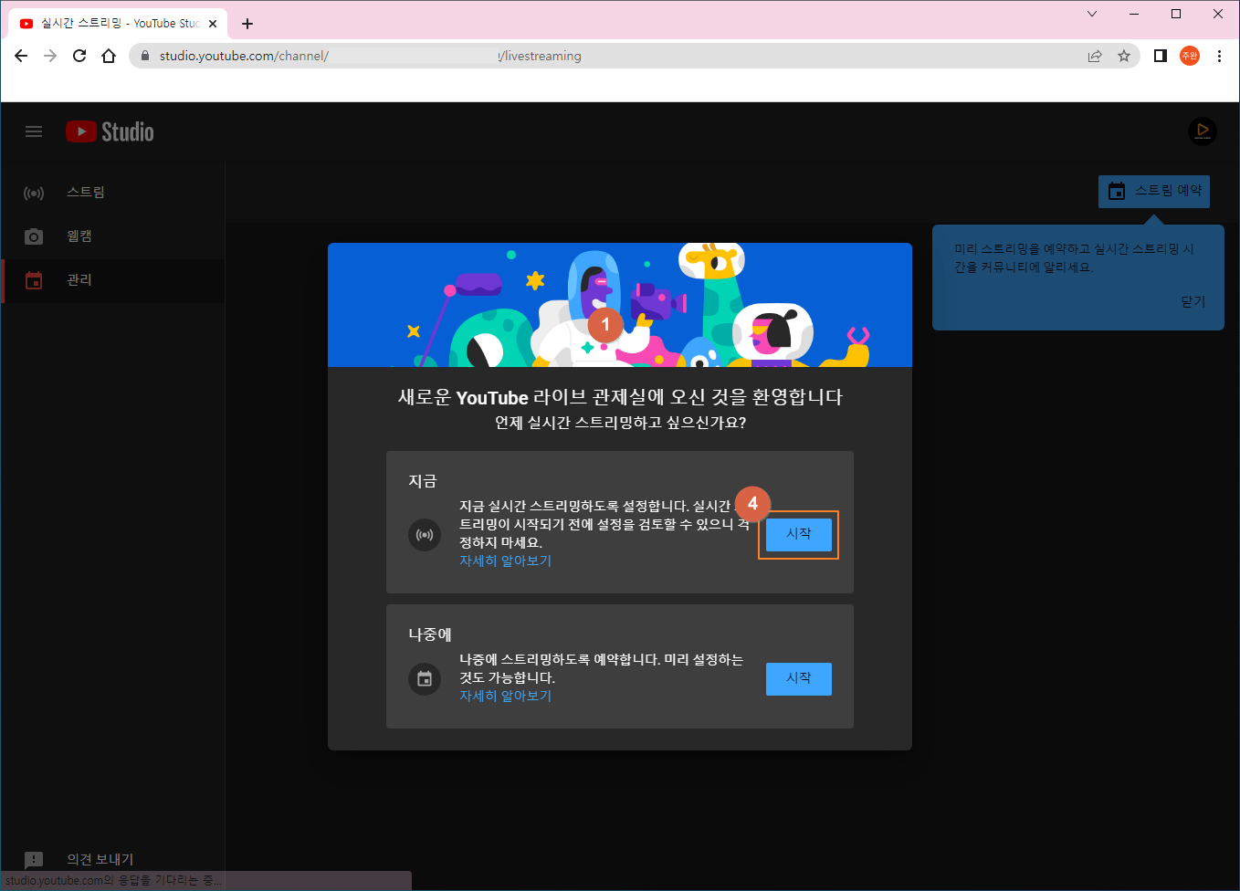 유튜브에서 라이브 방송을 하는 방법은 두 가지입니다.