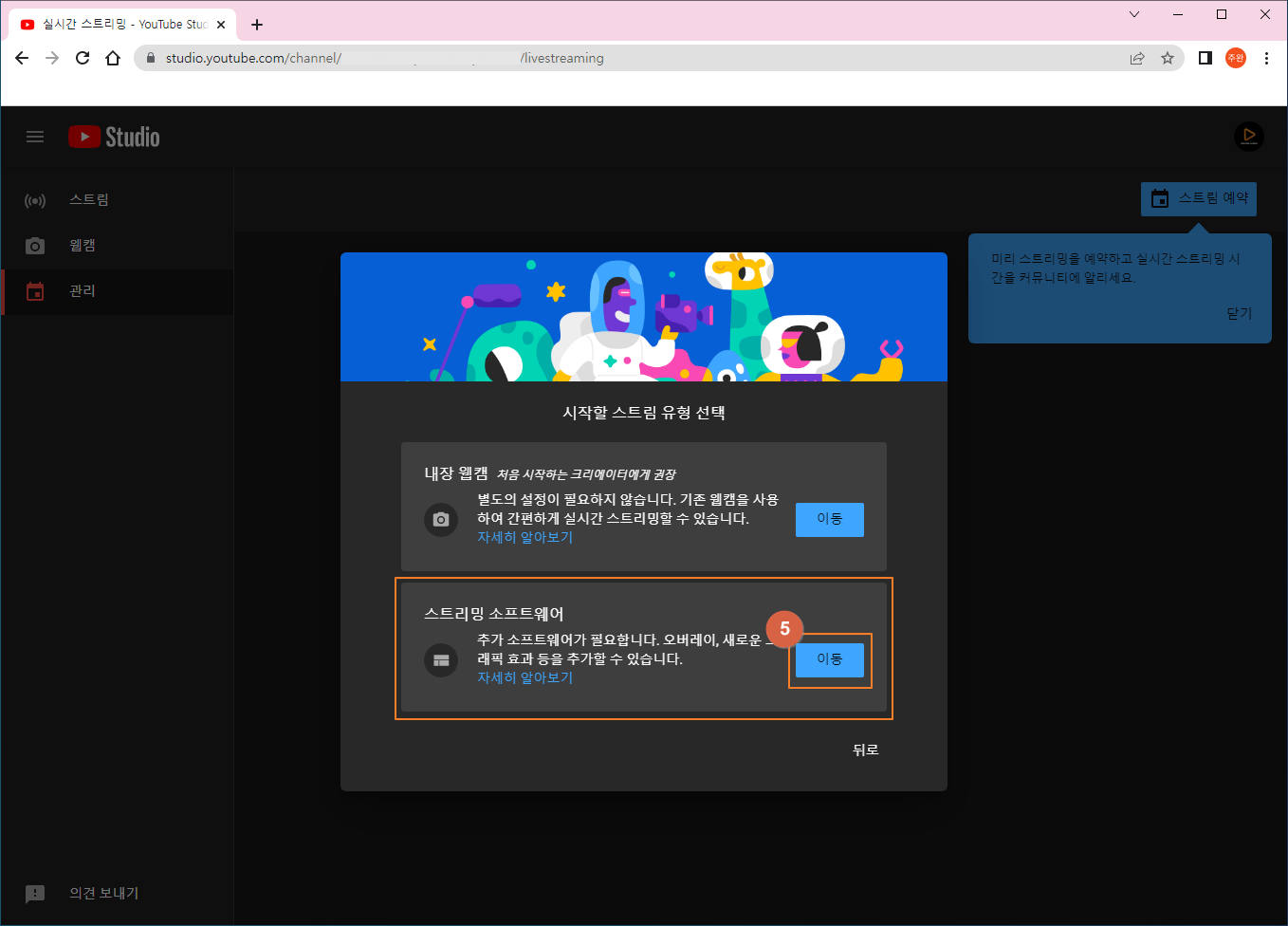 ⑤ 스트리밍 소프트웨어 항목의 [ 이동 ] 버튼 클릭