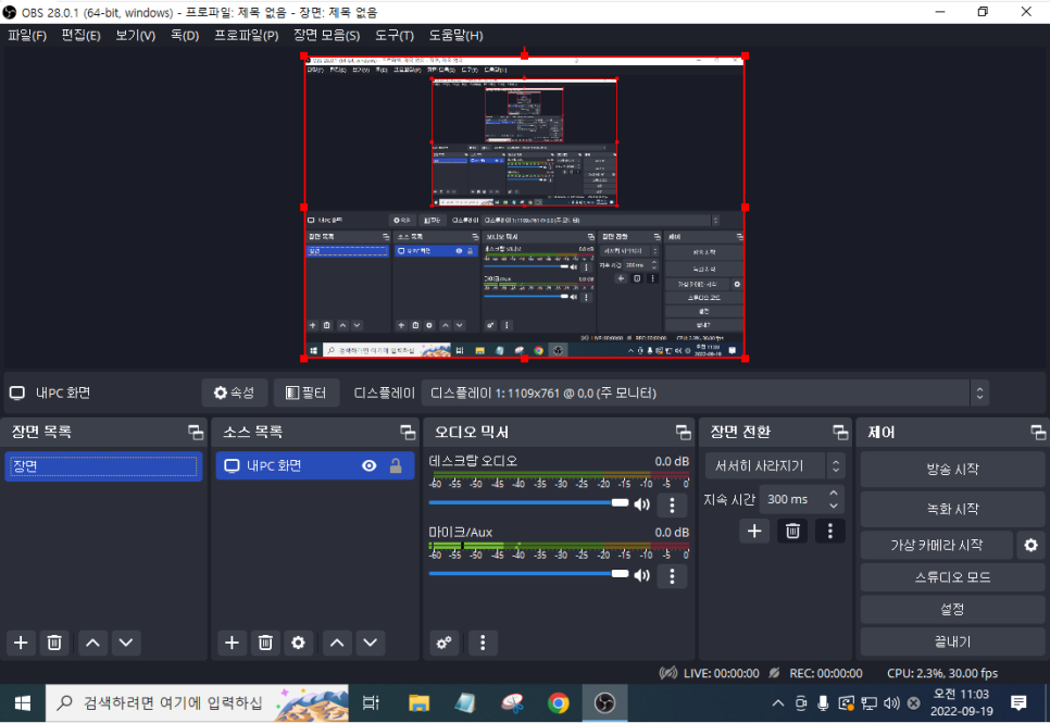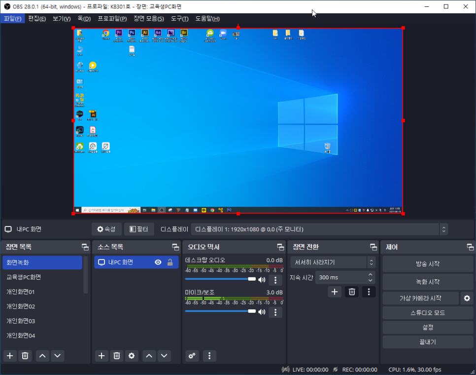 아래와 같이 컴퓨터 화면을 OBS 스튜디오에서 볼 수 있습니다.