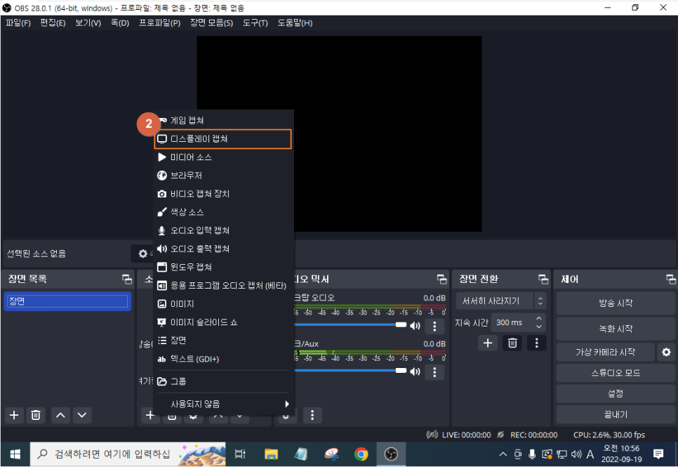 이번 단계는 OBS 스튜디오에 자신의 컴퓨터 화면을 나오게 하는 방법입니다.