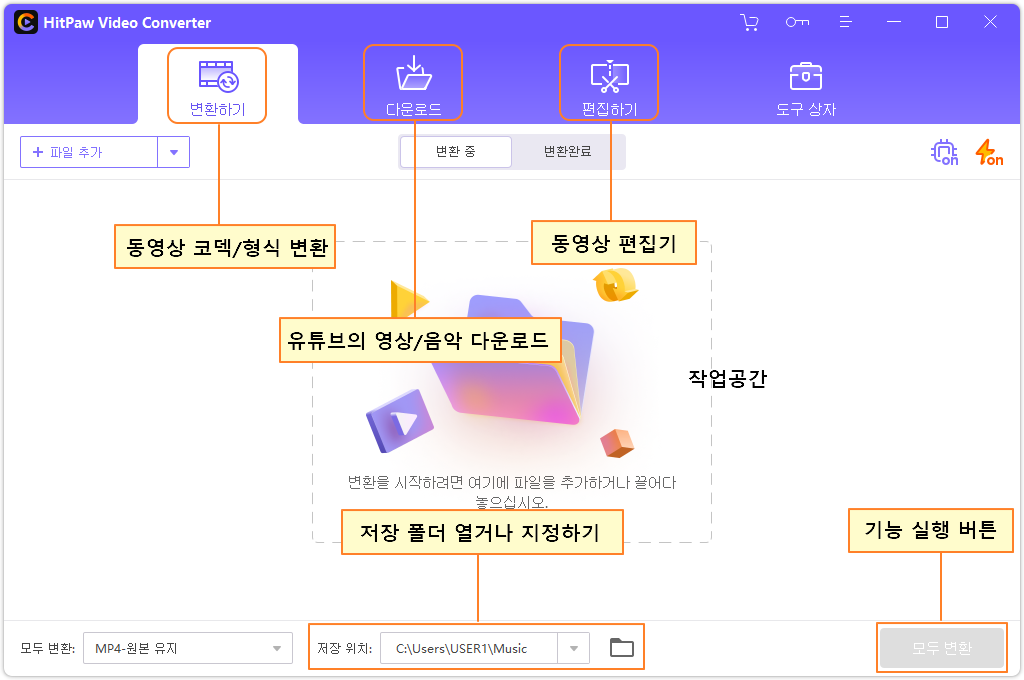 동영상의 변환/유튜브 영상과 음악 다운로드/영상 편집 기능이 합쳐진 컴퓨터용 프로그램입니다.