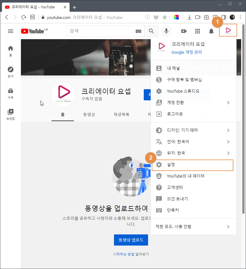 기본 설정 | 새 동영상의 댓글기능과 토론 탭의 댓글기능 설정 |