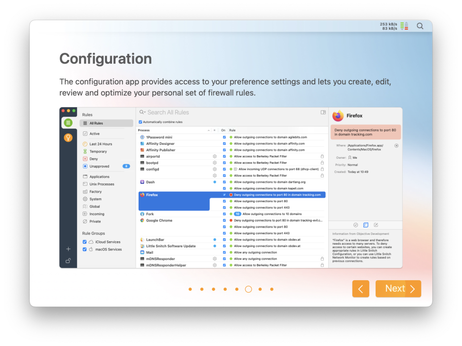 Little Snitch는 들어오는 트래픽으로부터의 공격으로부터 시스템을 보호하도록 본질적으로 설계되어 있으며,