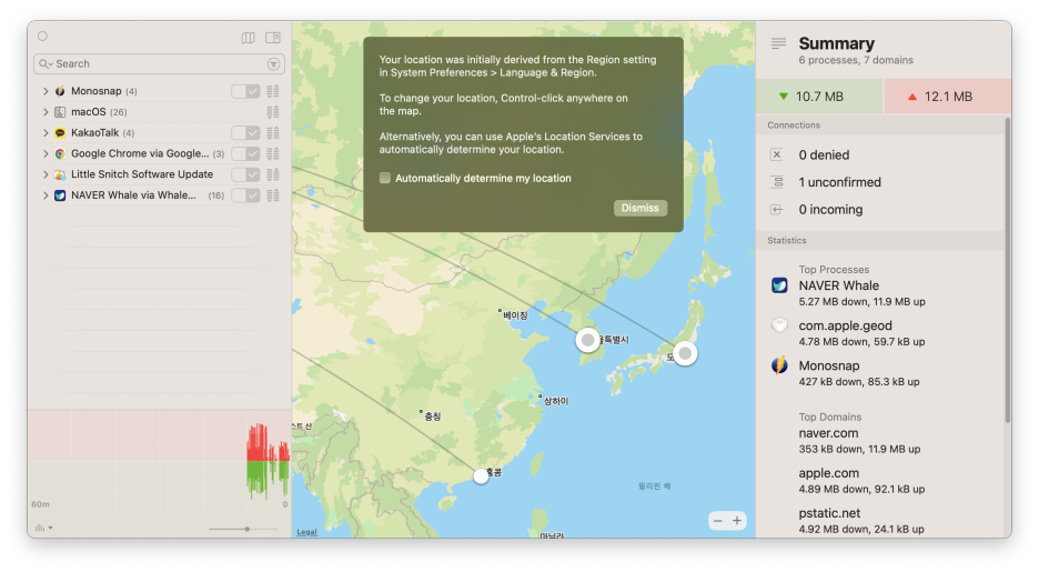 Little Snitch는 애플리케이션의 네트워크 상태를 모니터링하며,
