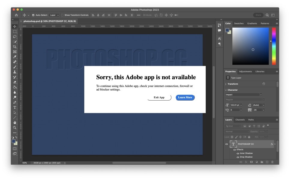 " Sorry, this Adobe app is not available "