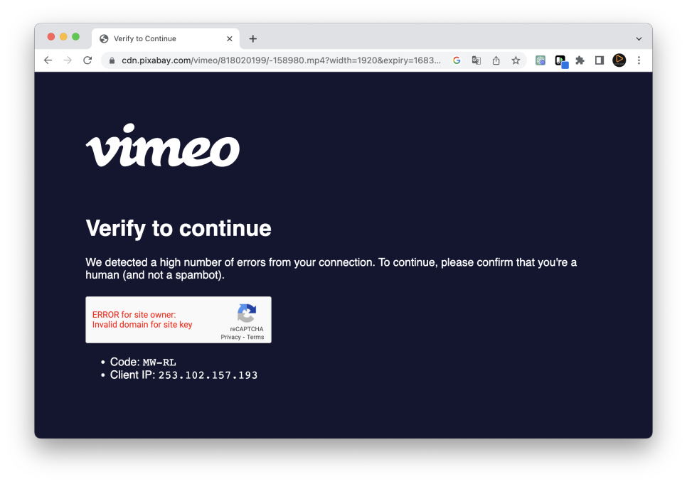 아무래도, 픽사베이와 Vimeo 사이에서 뭔가 문제가 발생한 듯합니다.