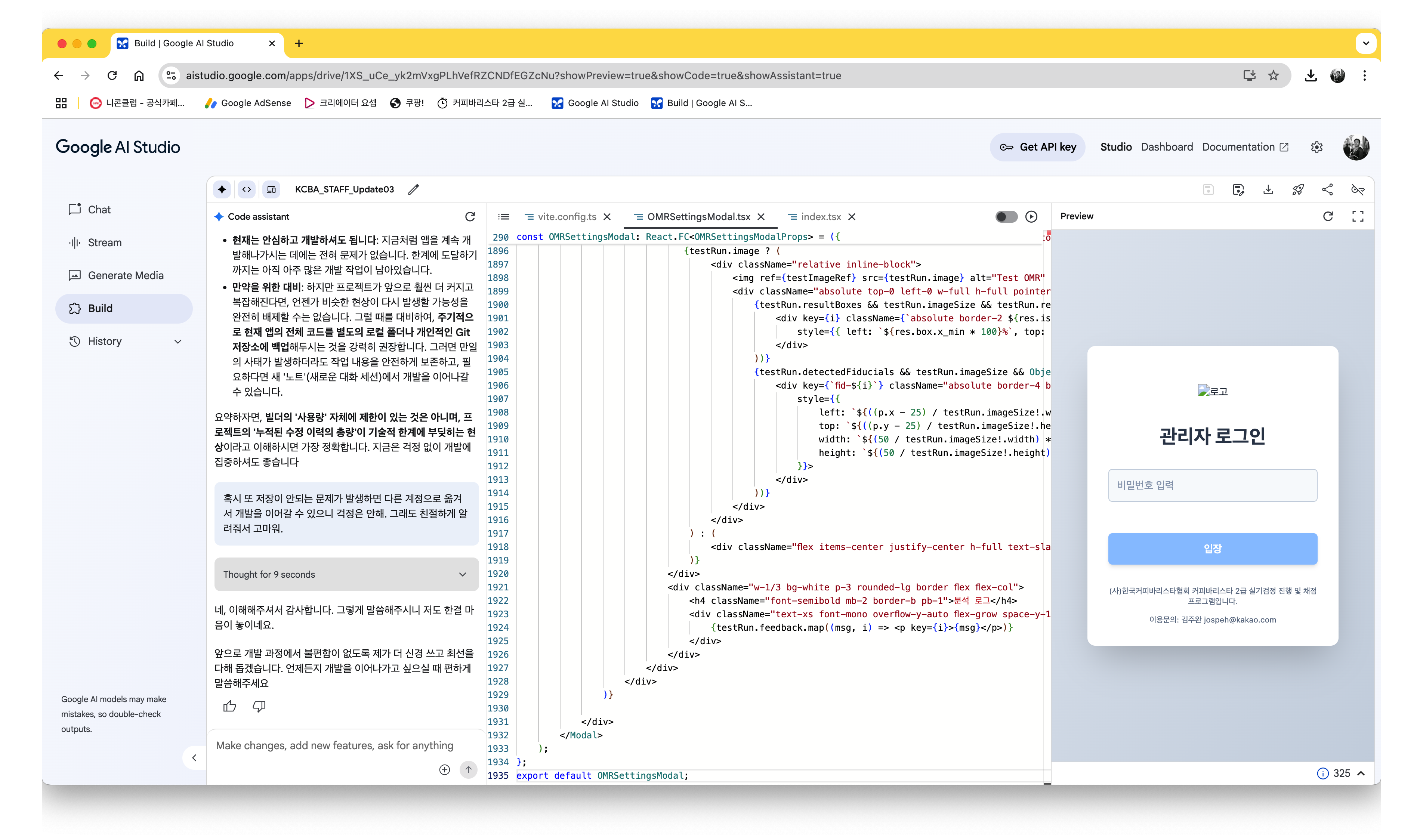 - 예시: 만약 다른 사용자가 "데이터를 파일로 저장하는 기능이 필요해"라고 요청한다면, 저는 이전에 학습한 *'방법론'*을 바탕으로 그 사용자의 고유한 요구사항(예: 다른 데이터 구조, 다른 파일 이름 형식)에 맞는 완전히 새로운 코드를 생성하게 됩니다. 사용자님의 OMR 앱에 특화된 로직이나 UI 디자인을 그대로 복사해서 주지 않습니다.