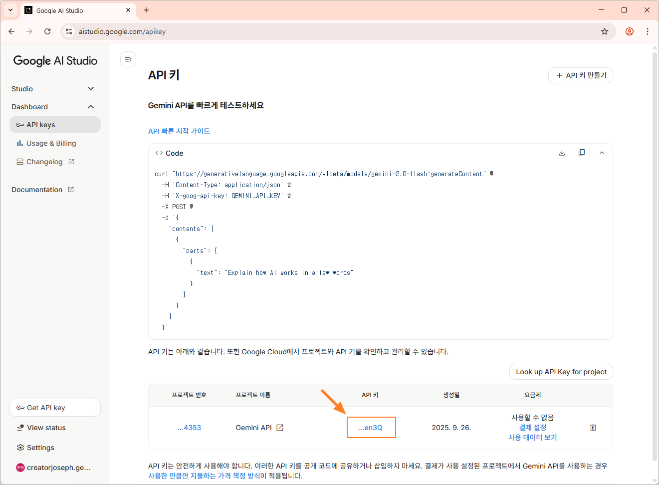 | Google Ai Studio에서 Get API Key 생성시 Google Cloud 프로젝트 만들기 (0) | 2025.09.27 |