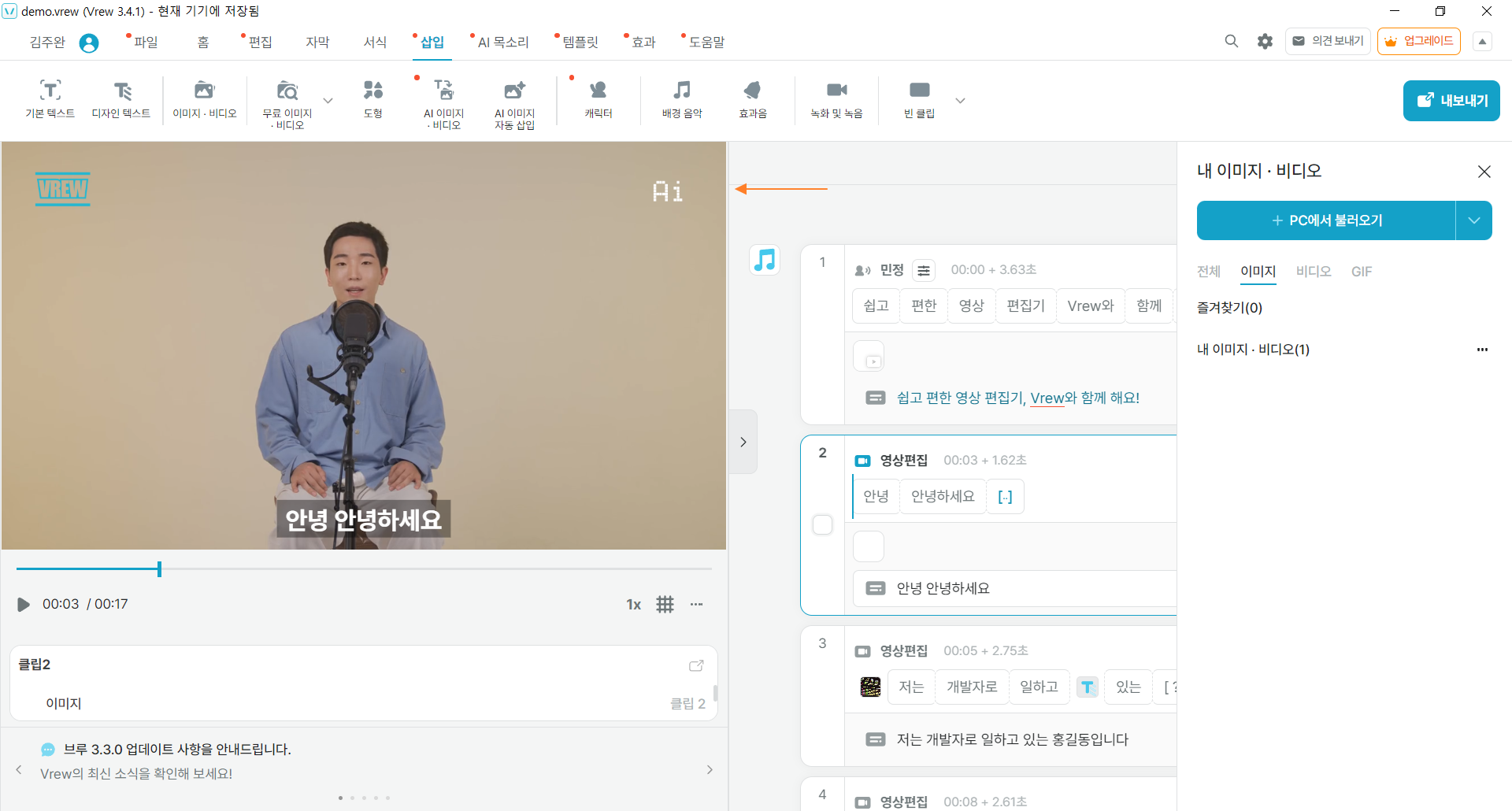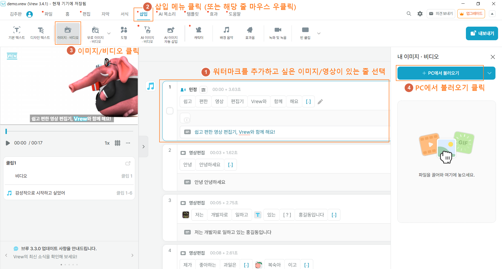 1. 브루(Vrew) 앱 에서 PC에서 워터마크 이미지 불러오기