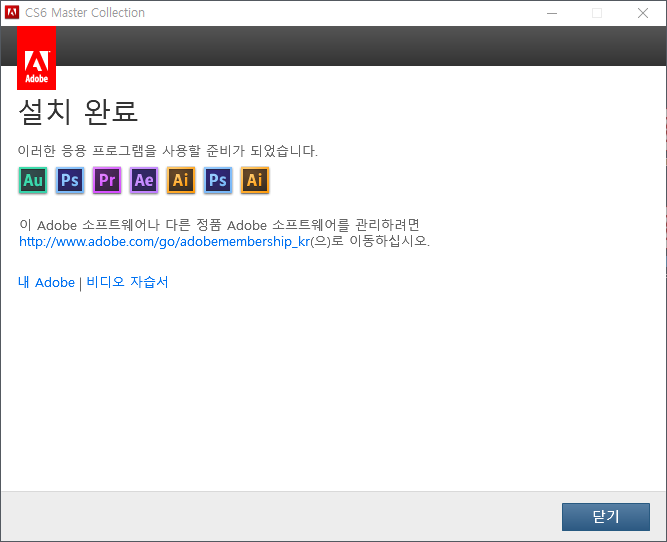 이상으로 Adobe CS6의 설치를 마쳤습니다.