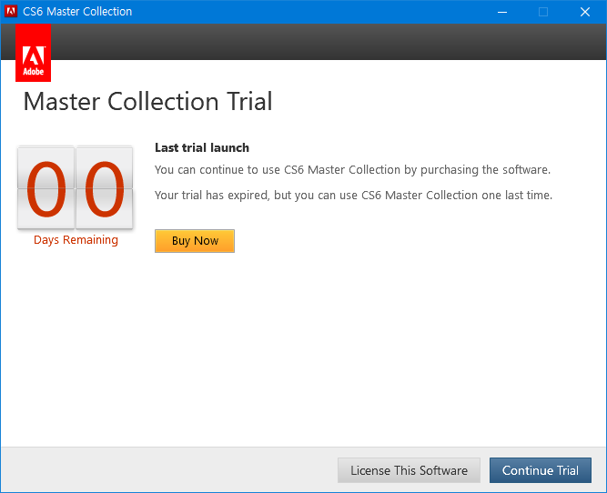 저는 아쉽게도 이미 사용했었기 때문에 남은 일자가 0인데요, 처음 설치하면 보통 30일 동안 시험용으로 사용 가능합니다.