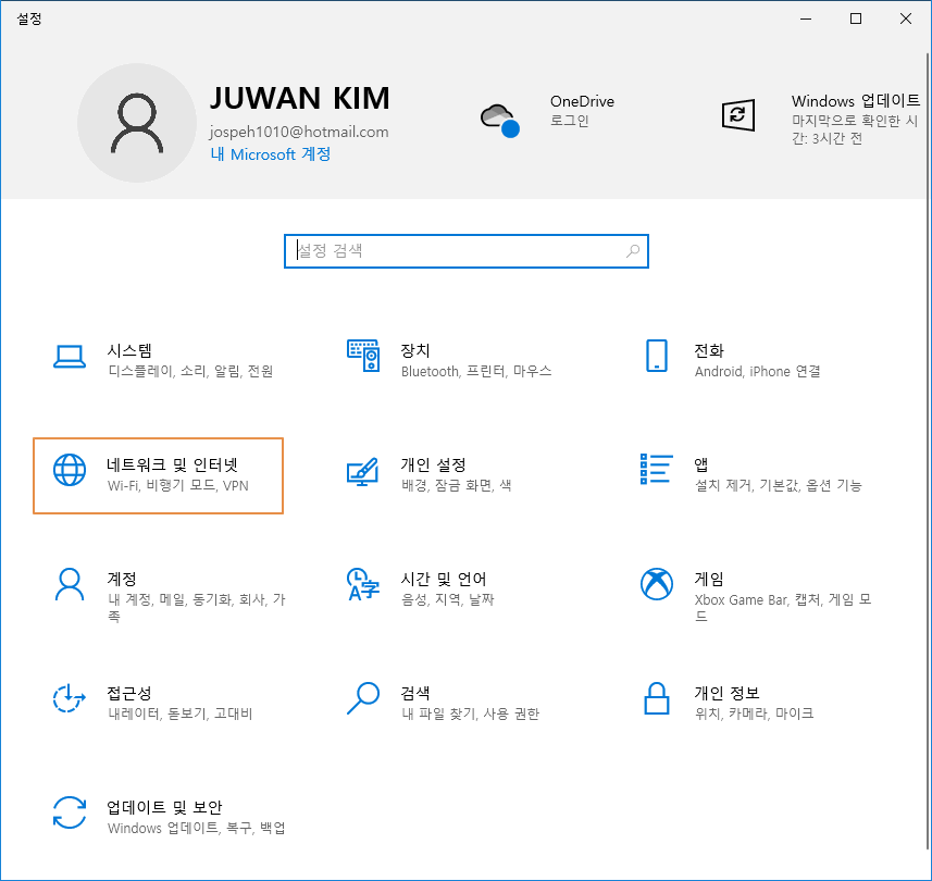 노트북 PC는 wifi 연결을 잠시 끊어 주시고 데스크탑 PC은 인터넷선을 잠시 뽑거나 아래 방법으로 인터넷 연결을 잠시 끊어주세요.