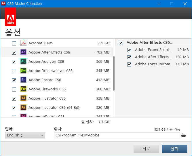 설치대상 : Adobe Creative Suite 6 Master Collection 영문