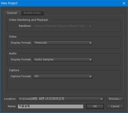 기본 설정 : 문서 - Adobe - Premiere Pro - 6.0 폴더 (설치환경에 따라 달라질 수 있음)