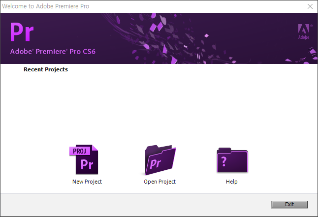 프리미어 CS6를 처음 실행하면 아래와 같은 화면을 만날 수 있습니다.
