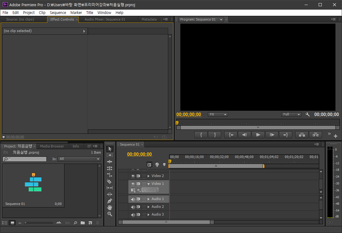 이번 과정은 체험과정으로, 프리미어를 처음 설치 후 프로젝트와 시퀀스 부분을 따라 하면서 설정해 보고 실행까지만 하고 프리미어와 처음 만나보는 간단한 내용입니다.