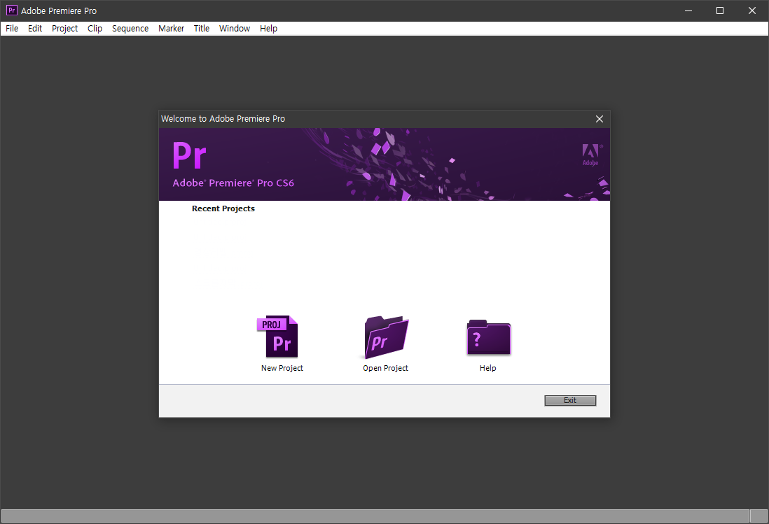 프리미어 CS6를 처음 실행하면 아래와 같은 화면을 만날 수 있습니다.