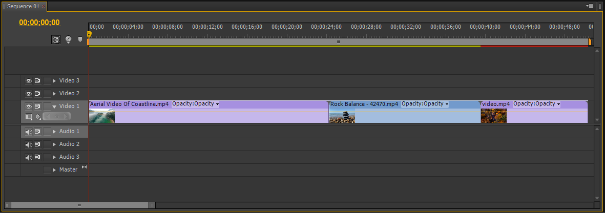 지난 시간에 진행한 3개의 샘플 영상을 타임라인에 올린 부분에서 이어집니다.