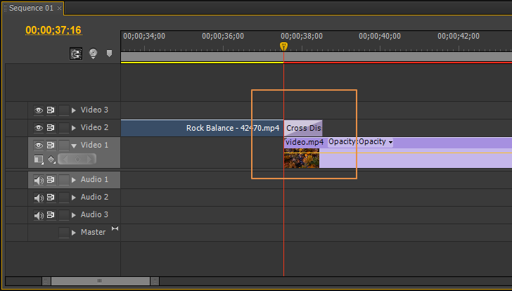 Cross Dissolve 효과를 두 번째 영상 뒤쪽에 적용시켜 줍니다.