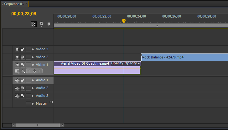 타임라인에 보이는 적색선을 타임라인 왼쪽 위에 보이는 시간을 확인하면서 왼쪽 커서 키를 눌러 1초 앞인 23:08까지 이동시킵니다.