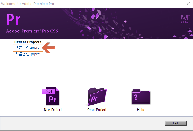 지난 시간에 저장해 두었던 샘플 영상 프로젝트를 클릭합니다.