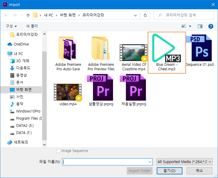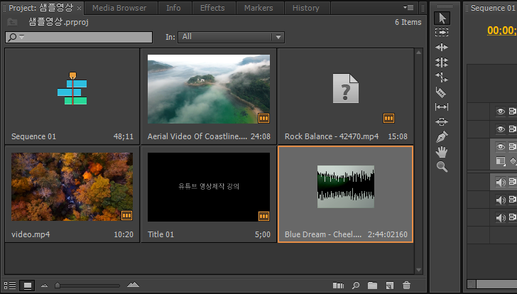 3. 프리미어의 프로젝트에 음악파일 추가하기