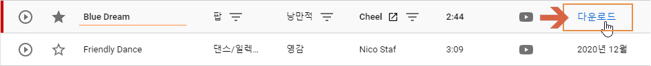 목록 위에 마우스를 올리면 오른쪽 끝의 날짜 부분이 다운로드로 바뀝니다.
