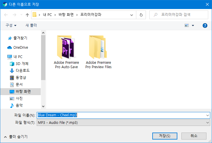선택한 음악 파일을 바탕화면에 만들어 놓은 폴더로 저장하겠습니다.