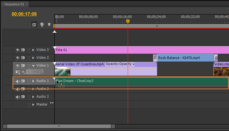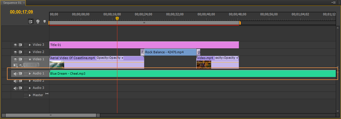 아래와 같이 음악파일이 Audio 1 트랙에 올려졌습니다.
