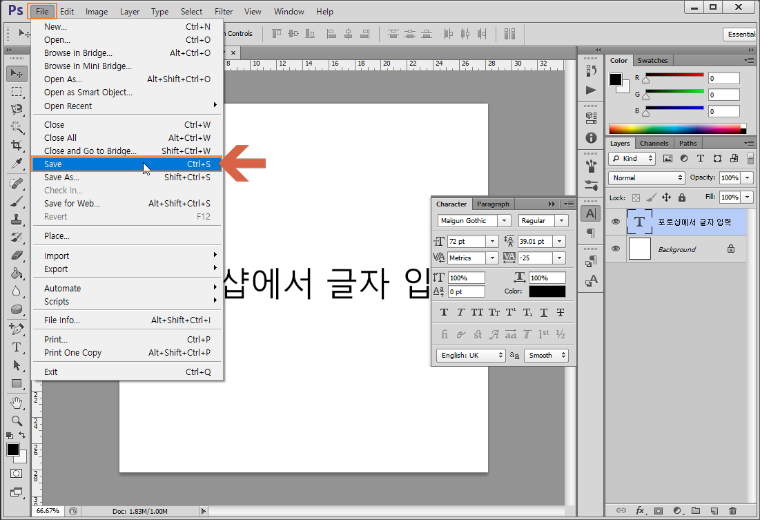 File 메뉴 - Save 선택