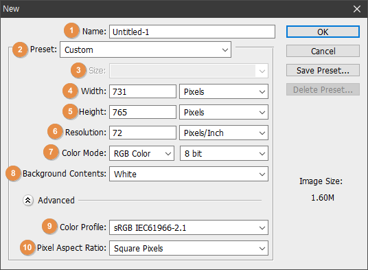 새 작업을 위한 과정에서 처음 만나게 되는 기본 설정창입니다.