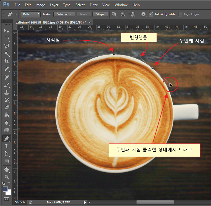 펜 툴로 그린 Path를 선택할 수 있는 도구이며, 두 가지 방식의 툴이 제공됩니다.